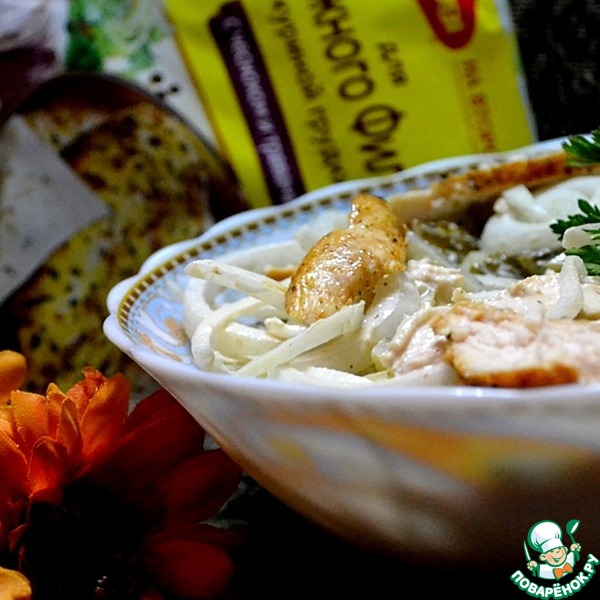 - Филе куриное (или 2 маленьких) - 1 шт;
