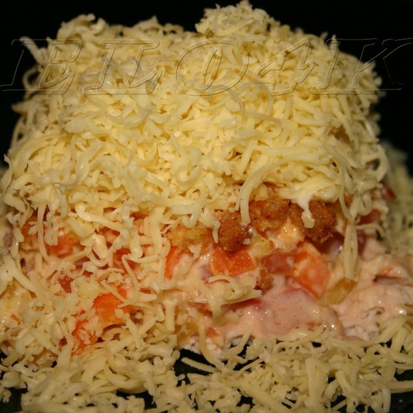 8. Посыпаем ржаными сухариками. У меня были "3 корочки", но лучше, конечно, взять самодельные.
