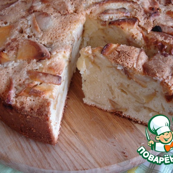 5. В смазанную форму вылить часть теста, высыпать яблоки, залить их оставшимся тестом.