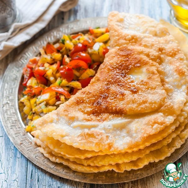 *Фарш в идеале должен быть бараний, говяжий или говядина+баранина, но я видела чебуреки и с курицей, и со свининой, и комбинации вышеперечисленных вариантов. Учтите только, что в куриный фарш пойдет меньше воды, а в говяжий больше.