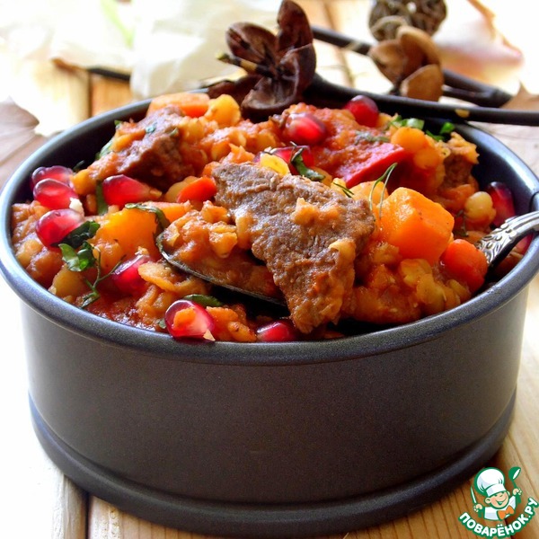 6. Выключаем посыпаем зеленью, накрываем полотенцем и даём настоятся ещё минут 15. Перед подаче посыпаем зёрнами граната. ммммм, вкусно очень. Как вариант можно подать кашу в печёной тыкве.
