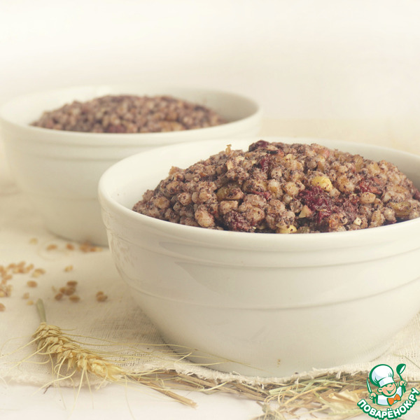 14. Все готово, можно собирать кутью! Соединяем пшеницу, орехи, изюм, вишню и мак. Все хорошо перемешиваем и заливаем медовой водой. Оставляем настаиваться. Приятного аппетита!
