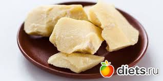 Какао-масло представляет собой твердую беловато-желтую массу, которая становится ломкой при комнатной температуре и плавится при t=33. Получают путем выжимания из молотых зерен плодов шоколадного дерева. Имеет приятный, шоколадный запах.