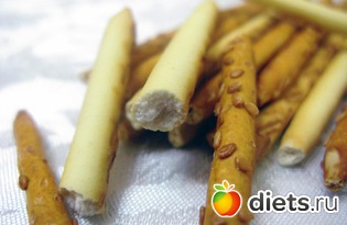 Хлебные палочки (хлебные соломки) – длинные тонкие хрустящие палочки, изготовленные по специальной рецептуре из дрожжевого теста, которые чаще всего можно видеть в магазинах с какими-нибудь дополнительными добавками. В чем отличие хлебных палочек от обычного хлеба? Хлебные палочки по своим свойствам суше, поэтому организм выделяет больше желудочного сока, следовательно, они лучше усваиваются, чем обычный хлеб.