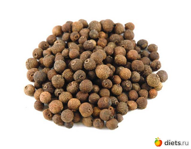 Перец душистый – сухие, незрелые плоды дерева пименты лекарственной. По другому его называют ямайским или английским перцем. На вид это горошины кирпичного цвета, немного шершавого на ощупь и больше черного перчика. По вкусу он может напоминать смесь из корицы, гвоздики, перца черного и мускатного ореха. Он может быть в виде горошка или молотым.
