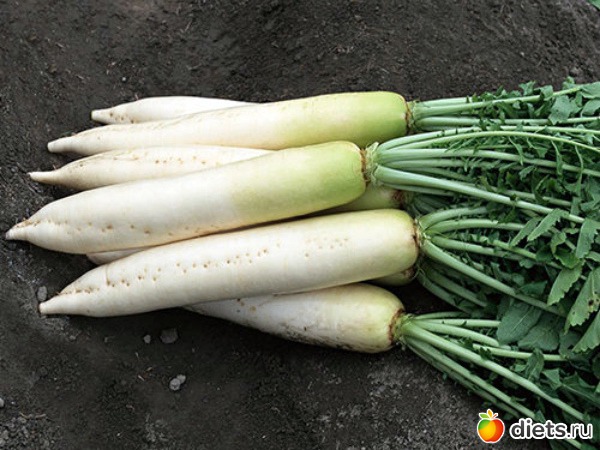 Дайкон - не что иное, как вид редьки и ближайший родственник капусты. Еще его называют японской, китайской редькой. Вырастать он может до 4 кг, очень сочный и не такой острый, как редька и редис. Он может быть в виде большой моркови или круглым, как репа. Мякоть бывает и белой, и розовой - все зависит от сорта дайкона. Имеет не резкий аромат. Этот овощ - один из немногих, кто не вбирает в себя вредные вещества из земли.