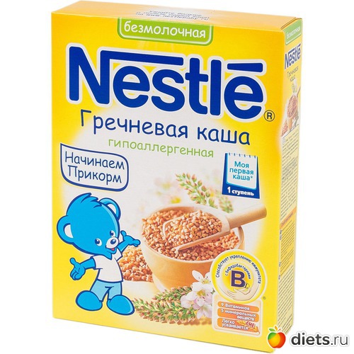 Гречневая каша Nestle безмолочная – продукт детского питания, который подойдет в качестве одних из первых прикормов малыша. Она является гипоаллергенной и может входить меню ребенка, начиная с четырех месяцев. Естественно, прежде следует посоветоваться с педиатром: он и даст рекомендации по объему каши, с которого нужно начинать включать кашу в рацион чада.