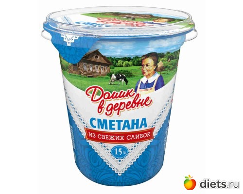 Сметана "Домик в деревне" 15% жирности: пищевая ценность