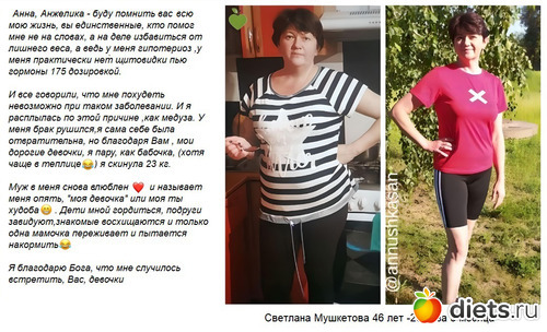 zdrastvuyte Anna. Pishu vam iz qoroda Baku. Mne 35 let . rost 154 ves 120 kq. poslednie 4-5 qoda starayus xudet ne polucaetsa. probavala nesklolko diet daje xotela neskolko raz qolodat dlya poxudeniya no vse ne polucalos. tak nadaelo vse. u menya nojki(koleni)bolyat. u menya esyo shitovidka est. prinimayu tabletki eutroks. pomoqite pojalusta..