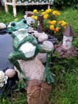 Этим летом часто бываю на даче. Наверное, поэтому лето получилось плодотворным. Ещё один важный момент: когда я увлечена своими "рукоделками", о еде забываю напрочь! В итоге, несмотря на случающиеся пикники, вес остаётся стабильным Последняя моя поделка - лягух Жорик из гипса и монтажной пены. Сидит у пруда, философствует...
