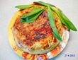 Затем кладем располовиненные помидорки-черри или просто ломтики обычных помидоров, заливаем яичной смесью:на шесть яиц-12 ст.л. ложек сливок или молока. Соль, перец по вкусу. Посыпаем измельченной зеленью...