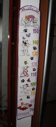 Пригодилось) Имя вышивала уже совсем сейчас. Ростомер начинается с 70, а это рост ближе к годику. Но функции ростомера у него так себе, скорее интерьерная штучка, для настроения...