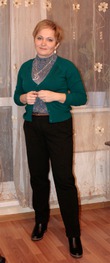 НУ вот сегодня решила немного отойти от стереотипа - кардиган расстегнула, под него водолазка-топ. Сапоги мне не нравятся под брюки - сама хочу что то полегче - ботильоны на каблучке повыше. Пока не купила Вспомнила, что надо улыбаться
