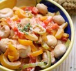 Шампиньоны и лук очистите, нарежьте. Помидоры и перец нарежьте дольками. В большой сковороде разогрейте оливковое масло, пережарьте лук, затем добавьте грибы и помидоры и перец. Убавьте огонь и тушите минут 20 под крышкой, не забывая помешивать...