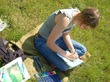 Сначала нас попросили просто нарисовать что-нибудь. А потом уже девочка начала показывать, как надо. Сначала научила грунтовать и заставила рисовать руками! Руки пока не отмылись...