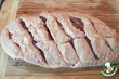 Грудку по желанию поделить на кусочки (среднего размера), замариновать на 40 минут: 1ст. л. горчицы, перец, базилик.
