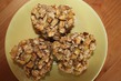 Размолоть отруби и овсяные хлопья в муку. Смешать с 2-мя желтками. Добавить пару ложек меда. Тесто перемешать. Переложить в формочку и поставить в духовку на 15 мин.
