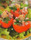Начинить смесью помидоры.