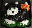 Салат выкладываем слоями в форме котика, каждый слой промазываем майонезом и подсаливаем...