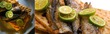 На плоское блюдо разложить вафельный хлеб, затем сверху уложить консервированную рыбу, полить соусом из оливкового масла, чеснока, лимона и лука-шалота. Украсить все кружочками лайма.