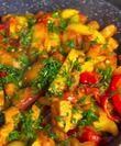 Всё нарезаем и соединяем, добавляем специи, перекладываем на противень. Поливаем сверху маслом и в разогретую до 200°С духовку на 30 минут...
