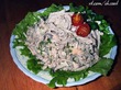 В большой тарелке смешиваем кальмары, рис, яйца, нарезанный лук...