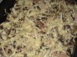 Кальмары чистим, отрезаем ножки-щупальцы. Сыр натераем на крупную терку или мелко режем. Грибы режем и тушим с луком и морковкой( я брала консервированные) и перемешиваем с сыром...