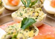 Яйца варим вкрутую, лук мелко нарезаем или натираем на терке. Когда яйца остынут, очищаем их от скорлупы, разрезаем вдоль на две части, желток вынимаем и протираем сквозь сито. Рыбные консервы протираем с измельченным луком, горчицей, добавляем протертые желтки, все хорошо перемешиваем. Полученной массой начиняем половинки яиц, выкладываем на блюдо и украшаем веточками зелени. Приятного аппетита!