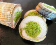 Такой рулет готовлю только летом, потому что в начинку идут чесночные стрелки. Небольшой пучок, хватит для вкуса, цвета и аромата.