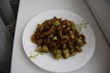 Нарезать сельдерей и залить кипятком на 5 минут, не больше, потом воду слить. Лук порезать и обжарить до прозрачного состояния на подсолнечном масле. К луку добавить, нарезанное тонкой соломкой мясо (нарезать мясо тонко в слегка размороженном состоянии), специи...