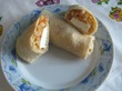 В готовый блинчик заворачиваем полоску сыра и начинку.