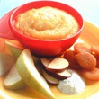 Грушу очистить, нарезать кубиками и варить в небольшом количестве воды с добавлением 2 бутонов гвоздики. Сделайте пюре, смешайте пюре с размятым бананом и посыпьте жареным миндалём.
