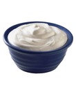 Низкокалорийный аналог сметаны можно быстро приготовить, смешав полстакана обезжиренного творога и две ложки ряженки (ряженки можно взять немного меньше или больше - получим более густую или жидкую сметану).