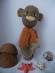 Имя придумалось случайно. Когда я его шила, к дочери пришла подруга, увидела только что сшитую голову(еще без ушей и без носа и без глаз) и говорит " А что это у вас, кокос что ли?". Ну я так и решила его звать Кокосик.