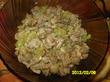 Сельдерей, чайную ложку хмели-сунели (что было дома) и три зубчика чеснока добавила к мясу с грибами