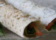 Теперь сворачиваем лаваш в рулет и разрезаем его попалам.