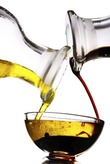 В небольшой банке смешайте оливковое масло, уксус, измельченный чеснок, соль и перец. Закройте крышкой и хорошо потрясите.