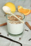 Творог растереть в блендере с мёдом, цедрой, соком и ванилью до однородной массы.