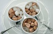 2 столовых ложки спирта (или 4 ложки водки, коньяка, бренди либо прочего крепкого спиртного). Всё это перемешиваем в миске голыми пальцами. Ничего страшного, что они липкие.