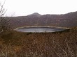 Это озеро Медвежья чаша. Мы к нему не спускались, так как там довольно опасно: медведи! Мы и так видели одного, мирно "пасущегося" около дороги. Именно пасущегося: он так увлеченно ел бруснику, что на наш автобус вообще не обращал внимания...