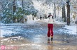Снег идет, она одна бежит. Не практически одна, а одна.