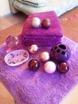 Короче, я бюджетно обновила ванную комнату к новому году: новенькие полотеньчики, коврик, подставка под зубные щекти керамическая, мыльница,