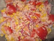 Хороший салатик, не банальный, и с интересным вкусом: помидоры, тунец, кукуруза и лук. Низкокалорийный и это хорошо. Единственный недостаток - его надо есть сразу после приготовления, потому как помидоры быстро выделяют сок.