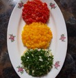 Ананасы обсушить салфеткой и выложить на листья салата( в этот раз у меня не было салата), нанести слой майонеза, затем нарезанные мелко креветки, снова майонез, тертое на мелкой терке яйцо, и опять майонез. Все посыпать тертым сыром.