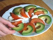 Вам потребуются: моцарелла - 150г; помидоры - 4 шт. (среднего размера); авокадо - 1 шт.; базилик (свежий или сушеный), молотый черный перец - по вкусу; оливковое масло - 3-4 ст. л.; лимон - 1/2 шт
