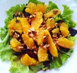 2 небольшие свеклы, 1 крупный апельсин, горсть очищенных грецких орехов, несколько листиков салата ромэн, оливковое масло, красный винный уксус, свежемолотый душистый перец, немного апельсиновой цедры...