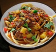 Мясо тушишь, потом туда лук, морковку, редьку зеленую (китайскую), перец болгарский...
