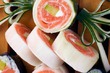 Эта вкуснейшая закуска содержит 60 ккал. Не путайте эти роллы с теми, что подают в любом суши-баре. Рецепт низкокалорийных роллов такой: на ломтики копченого лосося кладется по одной столовой ложке нежирного сливочного сыра. Закручиваем, охлаждаем и съедаем. Такой ролл содержит белок и Омега-3 жирные кислоты.