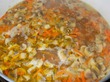 Чистим овощи, картофель, грибы, пшено промываем и замачиваем в холодной воде. В фарш добавляем яйцо, солим, перчим, тщательно перемешиваем и отставляем настояться.