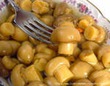 1. Шапиньоны вымыть, обсушить (у меня были крупные, я нарезала их на 4 части), затем выложить в глубокую сковороду или сотейник. К грибам добавить воду, растительное масло, соль, уксусную эссенцию (я заменила ее в виду отсутствия 8 ч. л...